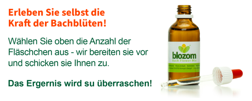 Mein Son nimmt jetzt schon seit 2 Wochen eure Bachblütenmischung ein und es läuft gut! Auch in der Schule verhält er sich viel ruhiger. (Dagmar - Ulm)